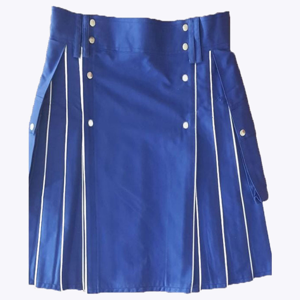 Blue Utility kilt With White line For Men